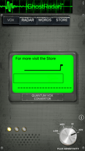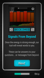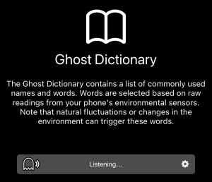 This one had similar functions to the previous app, only the words from “beyond the veil” would only appear if the EMF signal was strong enough. It had some nice sound effects — fuzzy static and beeping.