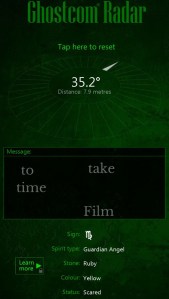 This was a little more “disturbing” than Ghost Radar Legacy but with a similar premise. Spooky music and sound effects, and also a more precise direction and distance given for the “presence detected.” Every presence detected had a star sign, spirit type, stone, colour, and emotional status, and a random message appeared from the presence before I tapped to reset. An explanation of the presence’s stats is only available if you pay for the pro version.